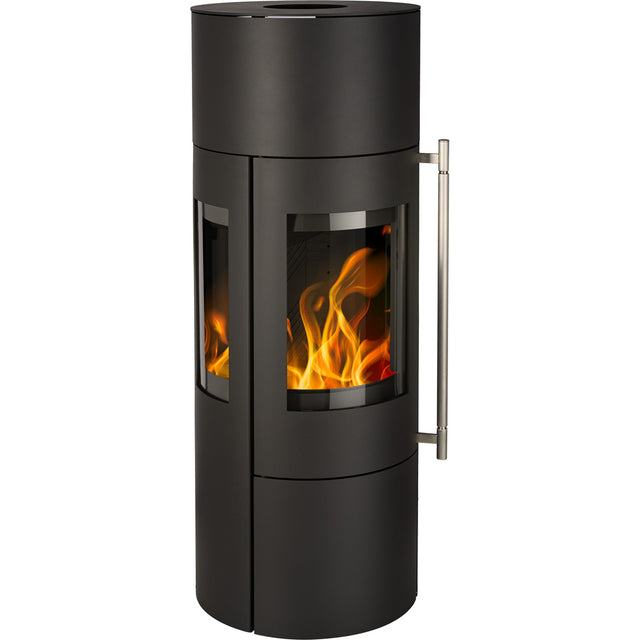 Ein bezaubernder Kaminofen mit einer Panorama 3-Scheiben-Verglasung gewährt einen umfassenden Blick auf das faszinierende Flammenspiel. Optional kann der Wärmespeicherblock erworben werden, um zusätzliche wohlige Wärme und entspannende Stunden in Ihrem Zuhause zu ermöglichen.