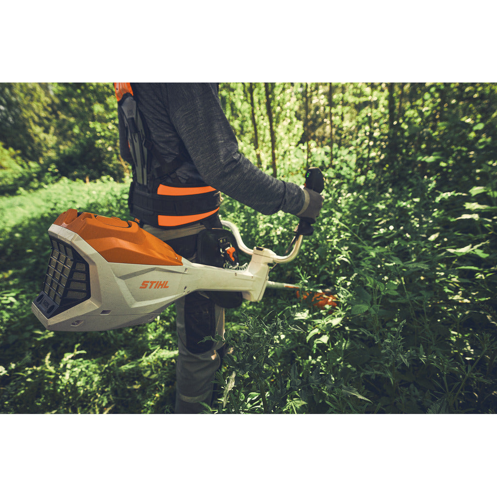 - robuster, leiser und sehr leistungsstarker Akku-Freischneider für Profis in der Garten- und Landschaftspflege, in kommunalen Betrieben und im Forst