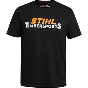 • wer sich zu STIHL TIMBERSPORTS® bekennen möchte, für den gibt es nun das perfekte T-Shirt in Schwarz mit Logo-Aufdruck in STIHL Orange und Weiß