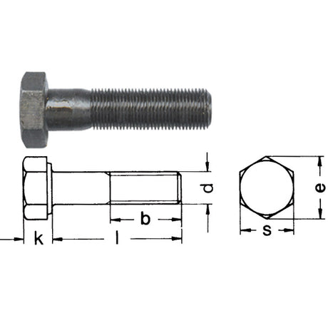 Hexagon screw partial and fine thread bright