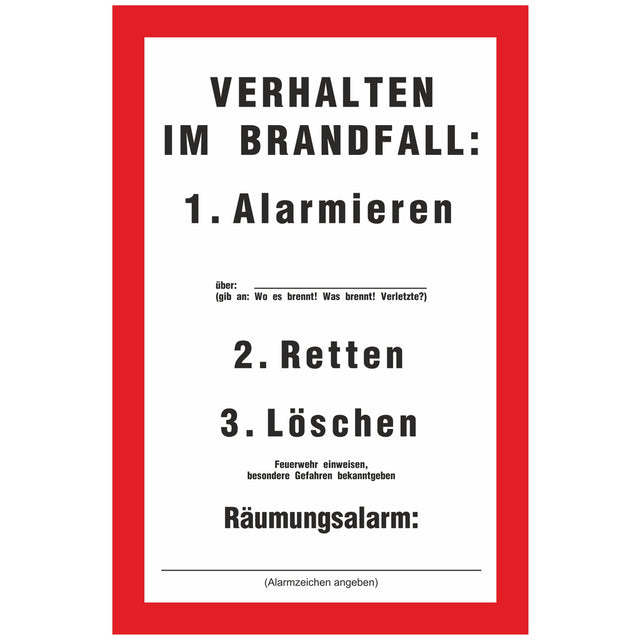 Fire protection sign - BEHAVIOUR IN CASE OF FIRE is backordered and will ship as soon as it is back in stock.