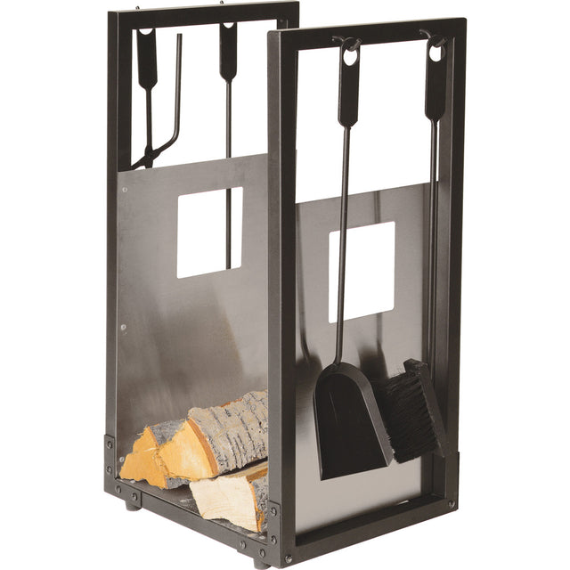 Cesto porta legna con attrezzi per camino 4 pezzi