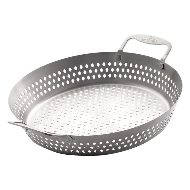 - Grazie alla forma perforata, il calore penetra rapidamente attraverso la struttura perforata di questo cestello per griglia fino al cibo grigliato.