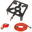 Contenuto della confezione: 1 fornello a sgabello, 1 tubo flessibile a bassa pressione (1,5 m - G 1/4" L) e 1 regolatore costante di propano (50 mbar)