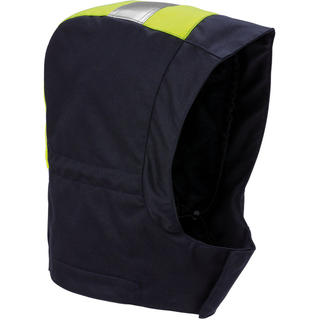 Flammschutz-Kapuze aus fluoreszierendem Material, kombinierbar mit der Winterjacke 119923. Kann unter einem Helm getragen werden.